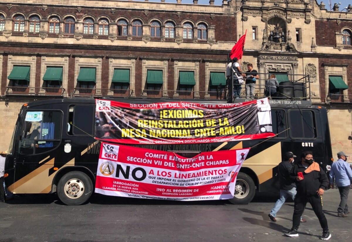 La llamada caravana del sur que salió desde Chiapas llegó a Palacio Nacional para entregar un pliego petitorio al presidente López Obrador, a quien demandan que reinstale las mesas de diálogo. Entre sus peticiones están la reapertura de la normal El Mexe en Hidalgo, el pago pendiente a docentes de Michoacán y que su jubilación sea calculada con salarios mínimos vigentes