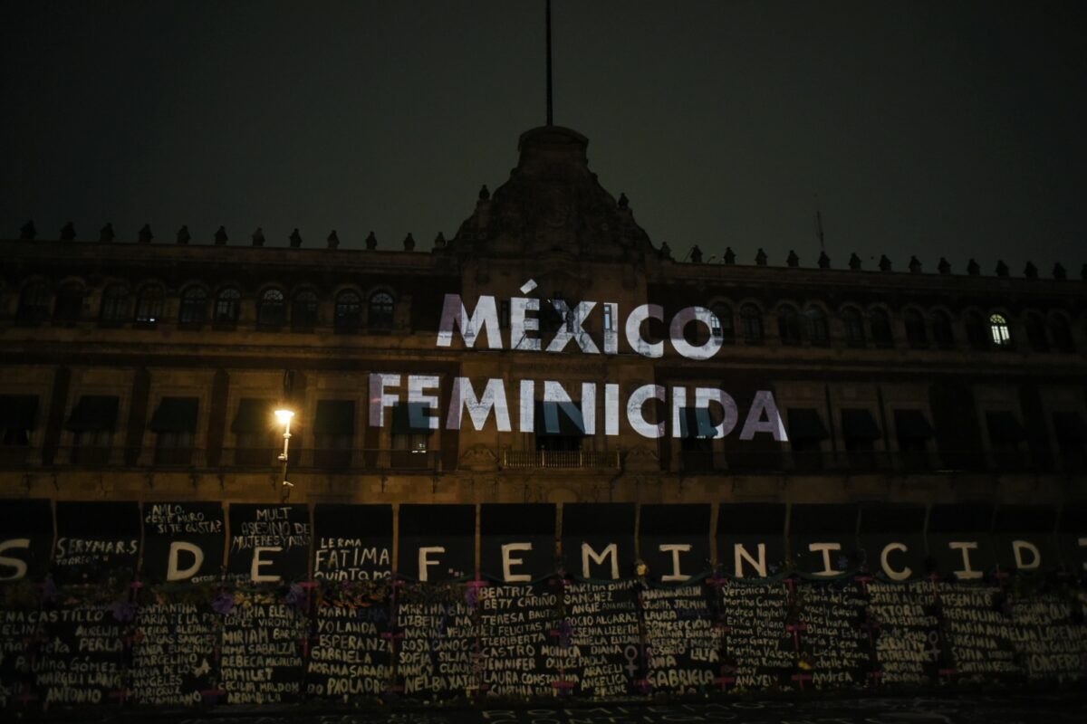 Mujeres organizadas convirtieron las vallas colocadas alrededor de Palacio Nacional en un memorial con flores, listones y papel morado para recordar a las miles de víctimas de la violencia feminicida en México