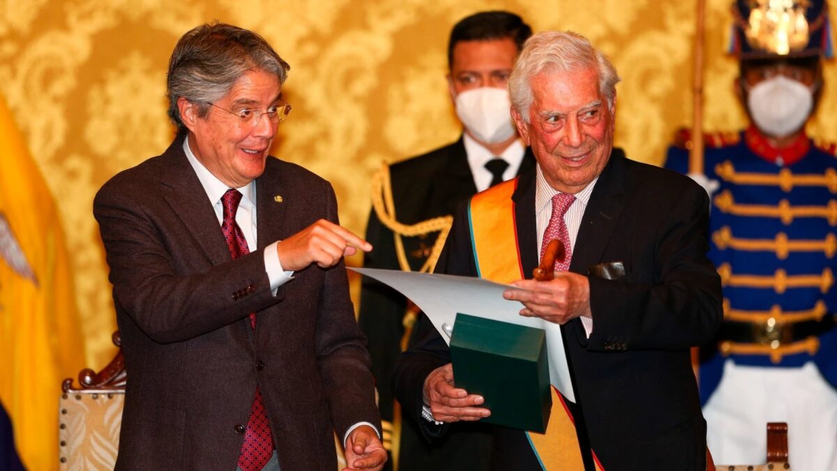 El expresidente Guillermo Lasso posteó su foto junto a Vargas Llosa, a quien condecoró en 2021. Lasso, el banquero que declaró la muerte cruzada, disolvió el congreso, luego de una crisis política causada por la denuncia de sus vínculos con una red de narcotráfico y crimen organizado.