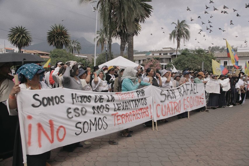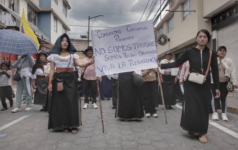 Los indígenas kichwas llevan casi un mes en movilización. El 22 de septiembre, 12 comuneros kichwas de Otavalo fueron detenidos, y luego trasladados sin explicación clara a cárceles en Portoviejo y Esmeraldas. Algunas familias denuncian no tener información sobre el paradero de ocho detenidos, lo cual constituye una desaparición temporal y una vulneración directa de los derechos. Las madres e hijas exigen “Tikramunkakaman“ (Hasta que regresen) como se escucha hoy en su música y en su lengua: