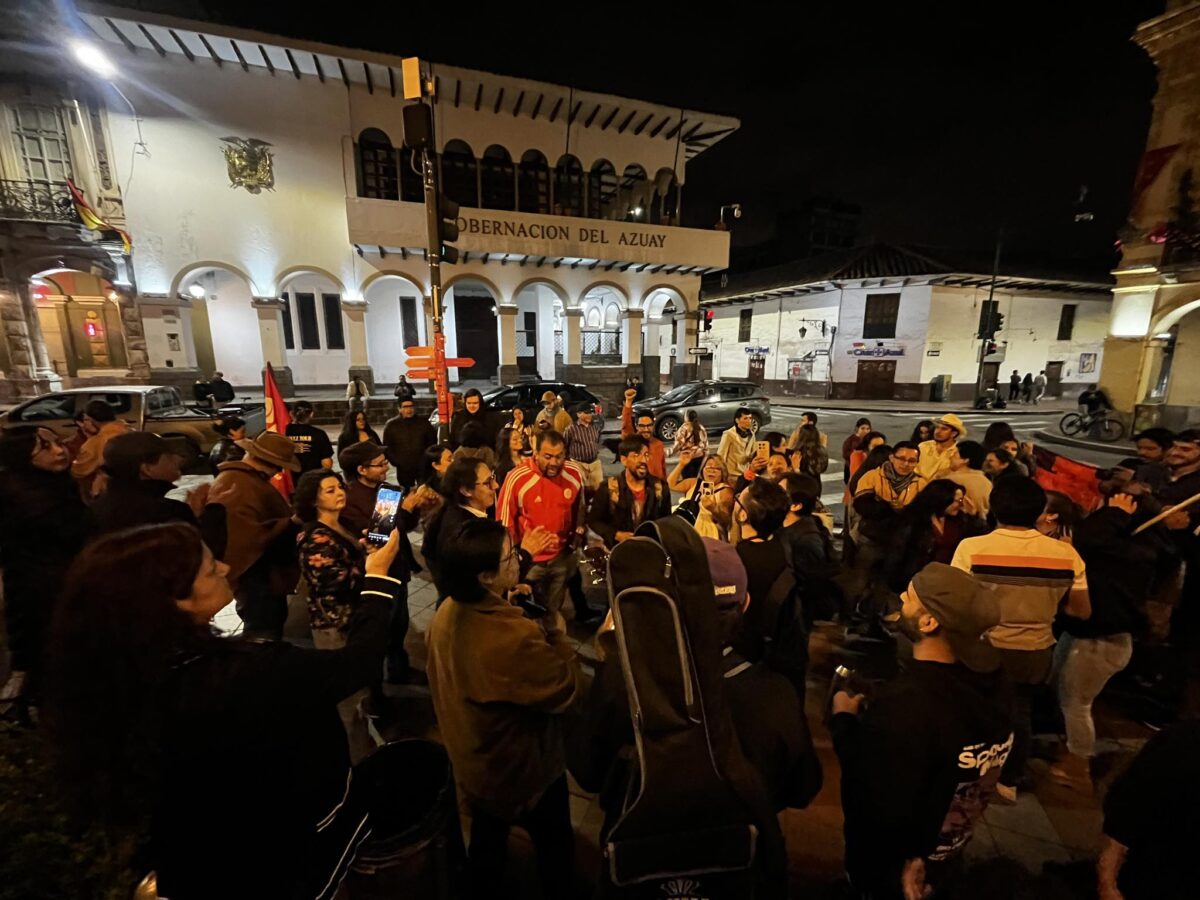 Ciudadanos se juntan en las calles de Cuenca para festejar los resultados de la Consulta donde se impone el “No”. Domingo, 16 de noviembre de 2025. Foto: Rafael Idrovo