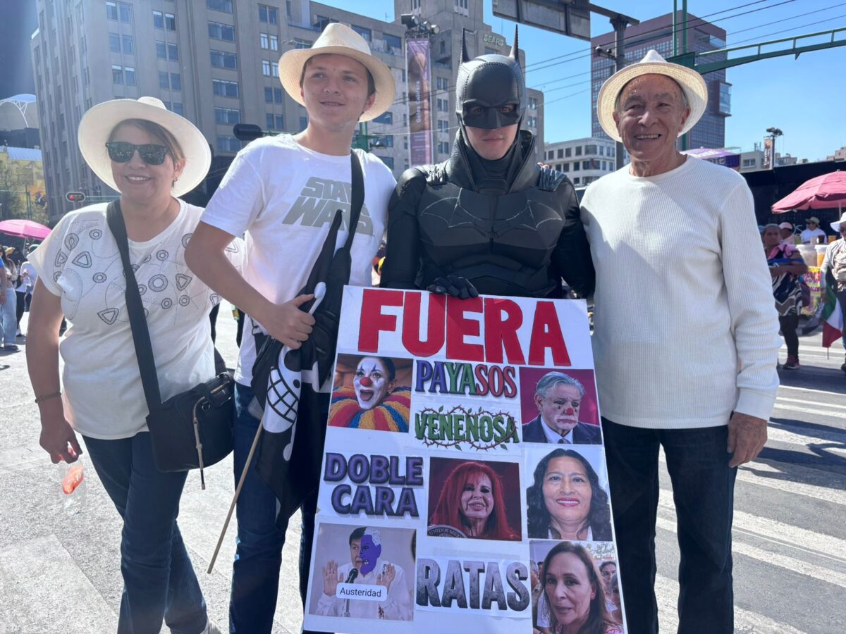 A unos pasos, otro joven avanzaba con una pancarta que decía: “Viva la libertad, carajo”, la frase que popularizó Milei. Rechazó dar entrevistas, pero recorrió la ruta rumbo al Zócalo gritando: “Fue un error estar con Obrador, ¡narcoestado!”.