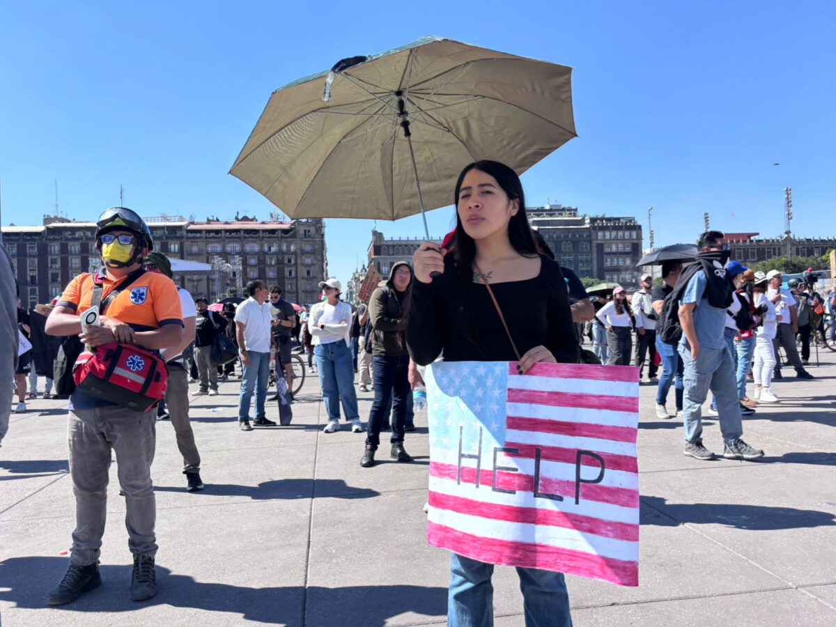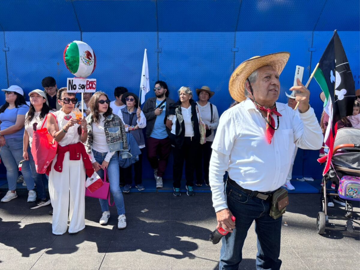La marcha avanzó tranquila por Reforma, pero unas cuadras antes de llegar al corazón de la Ciudad de México, en la calle 5 de Mayo, la atmósfera cambió. Un hombre canoso tomó un megáfono y repitió una orden que fue escalando entre la multitud: “Vamos a abrir la puerta, gente. Hay que apoyar”.