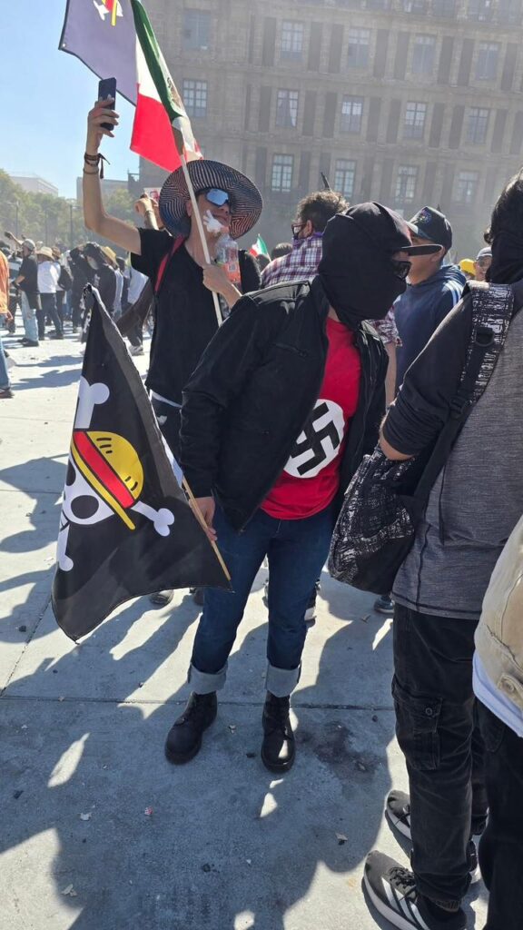 Durante la marcha hubo expresiones alarmantes dentro de los contingentes: banderas y playeras  con simbología nazi, carteles que pedían la intervención de Estados Unidos e isultos misóginos contra la presidenta.